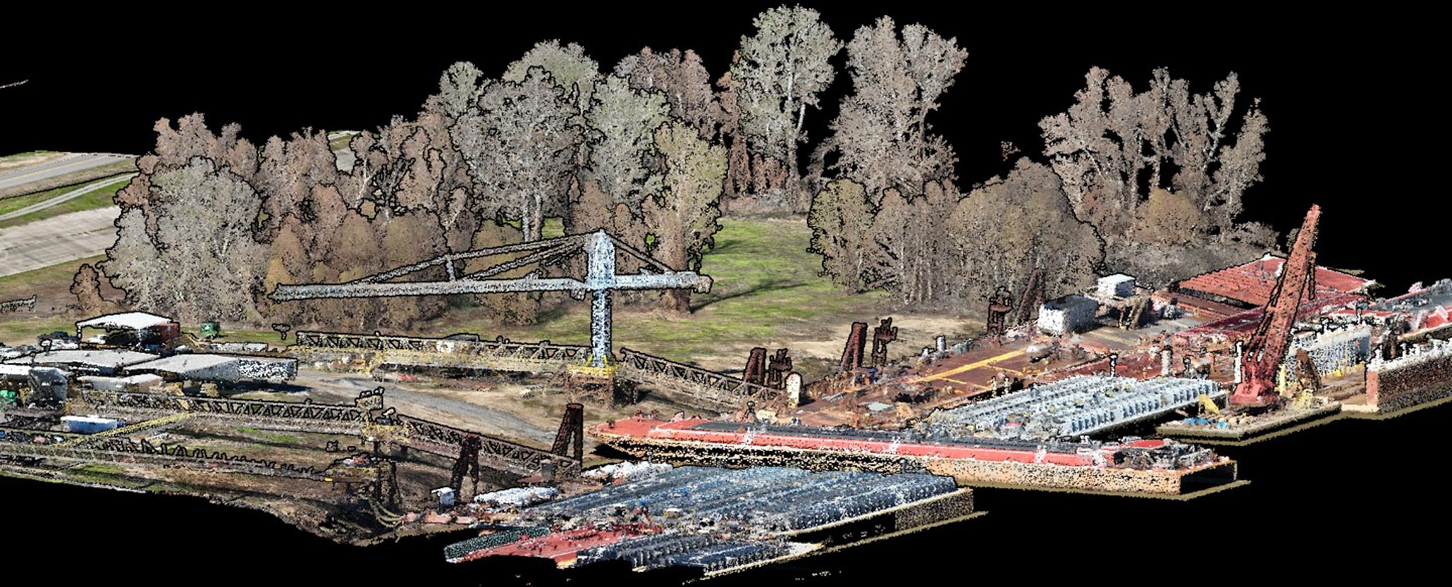 In order to successfully complete the required permitting and design services, the Providence survey team mobilized and conducted a detailed topographic survey of the proposed levee crossing locations, batture area of the upriver property, and a hydrographic survey of the Mississippi River. The topographic and hydrographic surveys were then used to perform a slope stability analysis. Cross sections were surveyed to originate at the protected side of the levee and extended to the center of the Mississippi River and aerial LIDAR was used to locate docks, vessel, barges, and other assets on the Mississippi River and incorporated into the surveys.